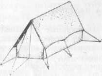 Из этой группы для базовых лагерей и зимних сложных путешествий целесообразно применять шатровые четырехскатные (рис. 2), а также различные модификации трехскатных палаток (рис.3).