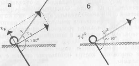 | Рис. 17. Схема действия сил на колышек палатки: а — при а > 90°; б — при а - 90° |