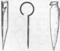 Уголковые колышки имеют большую площадь в проекции, перпендикулярной опрокидывающей силе, и лучше держат на рыхлых почвах, чем цилиндрические равной массы и длины. Однако колышки-шпильки очень удобны для самостоятельного изготовления и применения. Они легко вводятся в почву без применения дополнительного инструмента. Шпильки изготовляют из стальной проволоки диаметром 3—4 или алюминиевой — 5—6 мм.